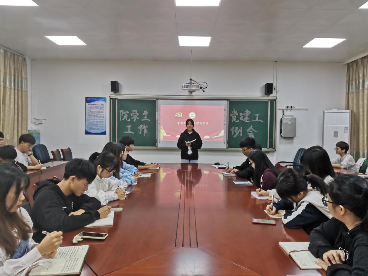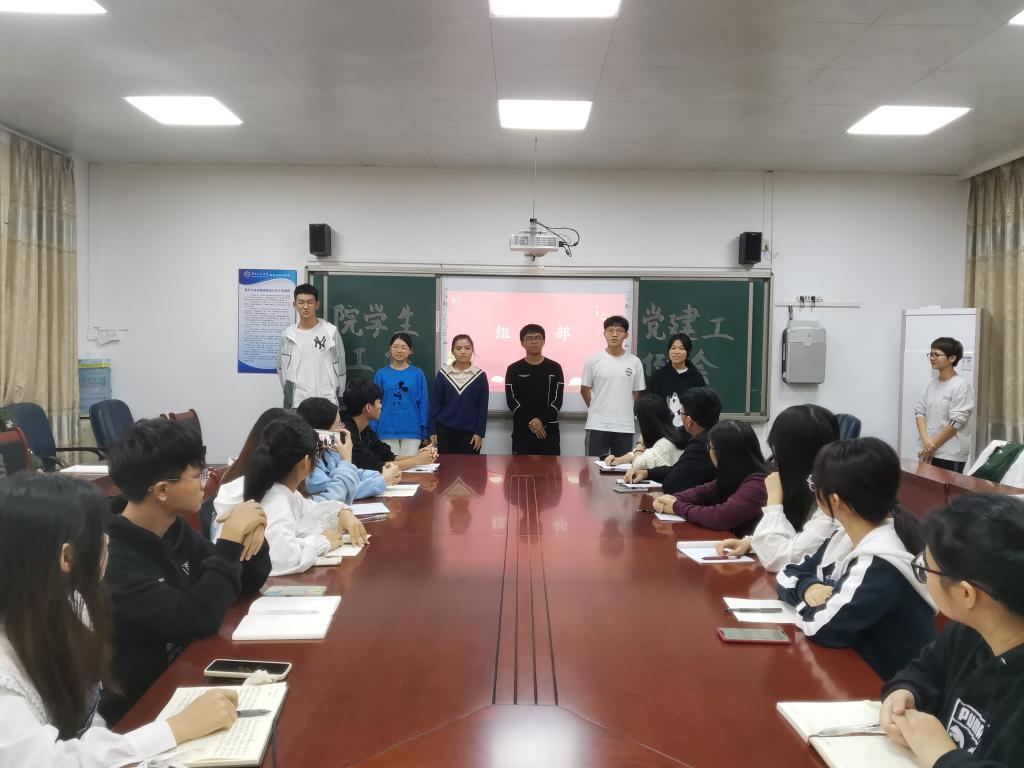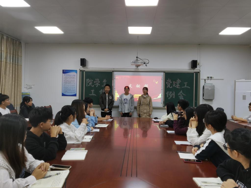 正职负责人龚心怡同样强调了学习和工作的重要性,此外,她还强调了,作为党建的干部要有大局观,对待工作要时刻保持激情,在工作中要“想干事,能干事,干成事”;新干要,要多问、多反思,利用党建这个平台提高自己的能力。并且介绍了入党流程,强调党建的干部应该了解入党的每一个流程,并积极向党组织靠拢,争取早日成为一名优秀的共产党员。