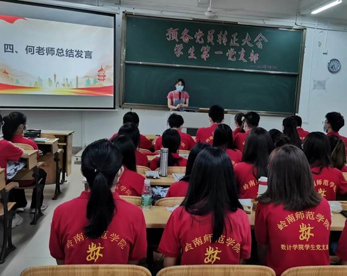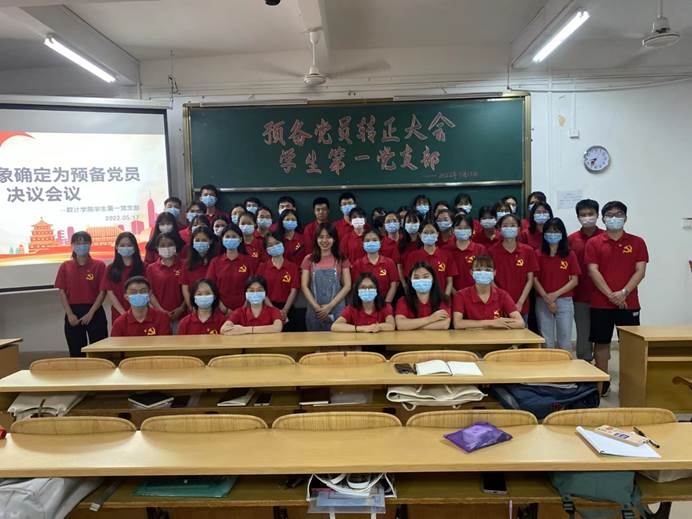 数计学院学生第一党支部于2022年5月17日晚上七点半在榕燕楼401召开预备党员转正大会,会议由我院学生第一党支部陈文雯同志主持召开,学生第一党支部全体党员参加。
