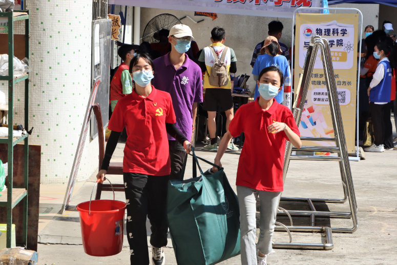 党员为新生搬行李