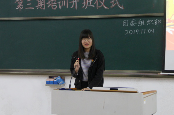 为了充分发挥团组织教育青年的功能,培养优良政治素质和积极先进的团员队伍,11月9日下午,我院于弘雷楼611室举办团校分校第三期培训开班仪式,学院党委唐洪浪副书记、辅导员叶成凯老师、何姝仪老师受邀出席本次仪式,团委学生干部以及各班级代表参加了开班仪式。
