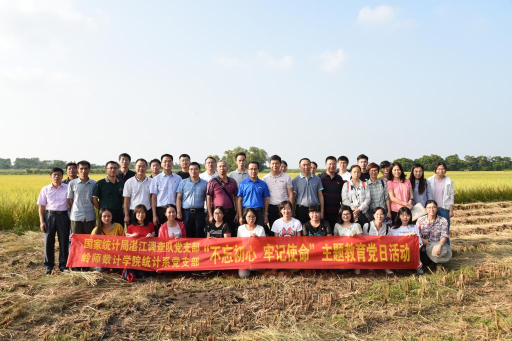 为落实学校关于加强校地合作的精神,进一步推进不忘初心、牢记使命主题教育。在学院党委书记李健彬、院长陈历敏的带领下,我院统计系党支部全体党员日前与国家统计局湛江调查队开展“校地合作,服务社会”支部共建活动,一起前往雷州市客路镇迈哉村开展水稻产量实测活动。在活动过程中,双方党支部就党建工作、业务管理等进行交流学习。国家统计局湛江调查队副队长徐乔峰同志、陈日先同志率队参与共建活动。