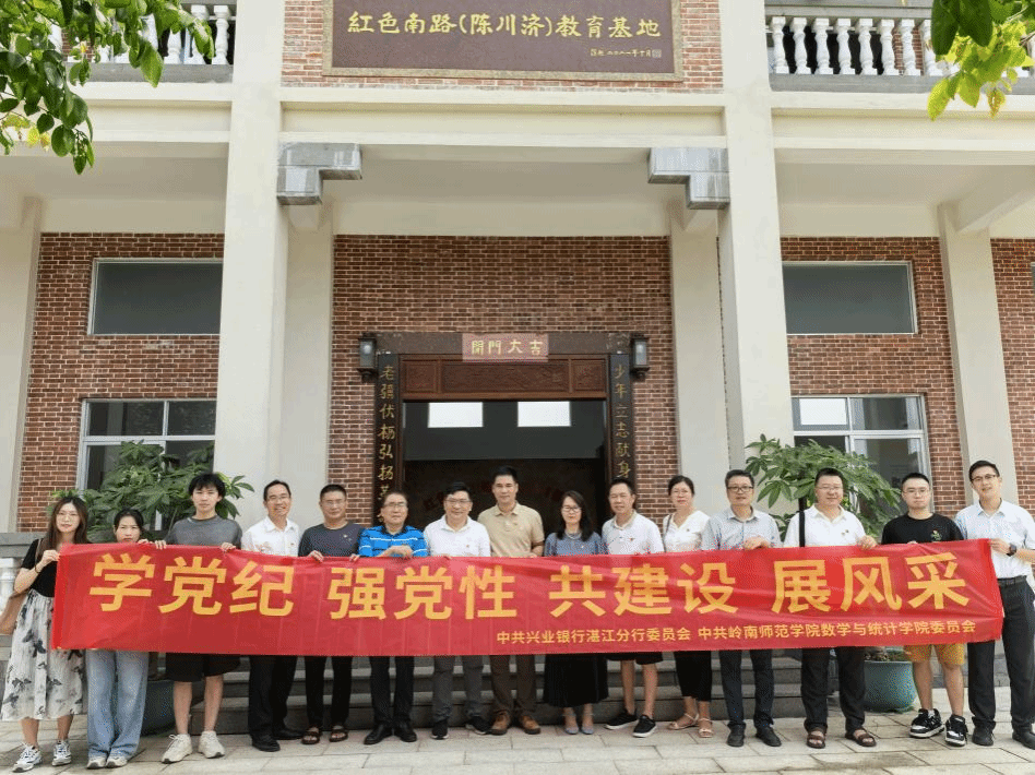 为深入学习贯彻习近平总书记关于党纪学习教育的重要讲话,加强党性教育和党风廉政建设,我院党委与兴业银行湛江分行于6月30日前往红色南路(陈川济)教育基地开展“学党纪 强党性 共建设 展风采”共建活动。数学与统计学院领导班子全体成员、各系系主任、兴业银行湛江分行营业部总经理钟小兵、兴业银行君临海岸支行筹建组组长陈建军等一行人参加此次活动。