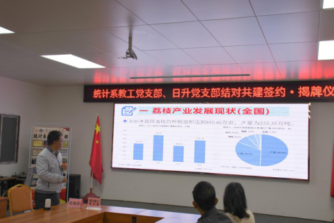 为推动乡村振兴战略,促进良荔产业产业发展。2021年12月19日,统计教工党支部与良垌镇镇委和良垌镇日升合作社支部委员会在良垌日升合作社基地举办共建活动,签署共建协议和举行挂牌仪式,数学与统计学院党委书记李伟、良垌镇镇委副书记梁安朋同志等出席活动并致辞。
