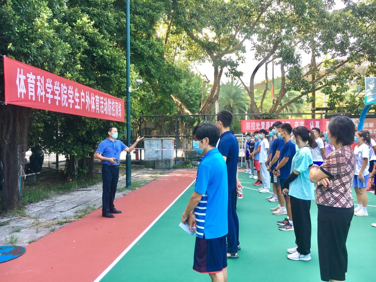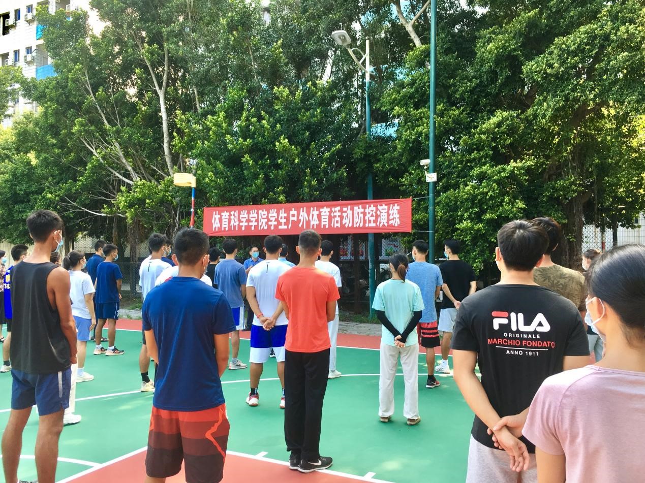 为落实省委省政府、省教育厅和湛江市委市政府应对新冠肺炎疫情的决策部署,结合学校学生返校准备工作安排,进一步做好学生返校、正常学习、生活,8月20日下午,体科院雷阳区篮球场开展了学生户外体育活动疫情防控模拟演练。体科院党委书记庞景才、副院长(主持)王海涛、党委副书记屈云、副院长梁立启,以及各系部主任、老师、辅导员和学生共同参与了模拟演练。