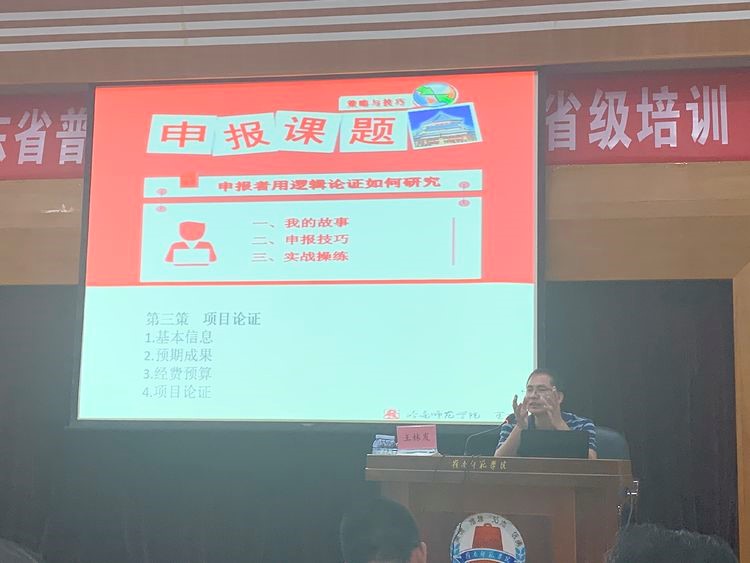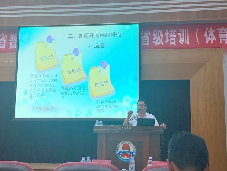 开学第一课,由王林发教授向学员们教授:《教师专业发展与促进》。课堂上,王教授讲课生动有趣,制作课件引用动漫“灌篮高手”中的内容展开讲授“如何成为高手”,学员们听得津津乐道。王教授并向学员们提出要成为在体育圈子成为有一定影响力的三维度要求,教育学员们要不断学习、努力尝试。另外,王教授向学员们讲述了关于课题申报的相关知识,并向学员们介绍了自己丰富的课题研究经验,学员们都表示受益匪浅。