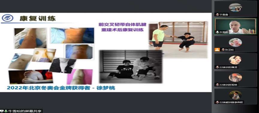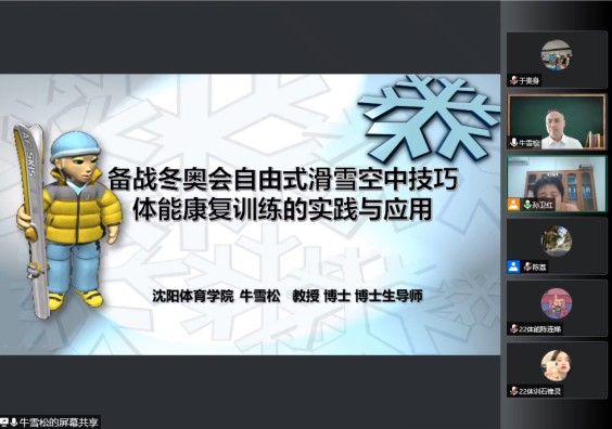 28日下午14:30时,牛雪松教授作了题为《备战冬奥会自由式滑雪空中技巧体能康复训练的实践与应用》的报告,通过国家队自由式滑雪体能训练实践,本报告分项目特征、康复训练案例、康复训练评价与监控三部分进行讲解。