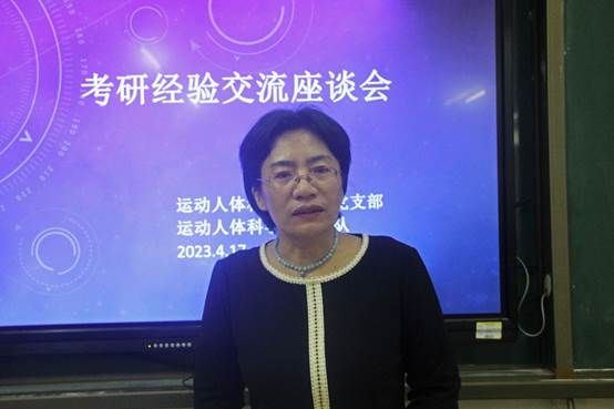 为加强学生对考研知识和经验的了解,进一步推进学生考研备考工作, 4月17日晚,体科院运动人体科学系在教二508召开2019届毕业生考研经验交流座谈会,体科院运动人体科学系主任刘玉倩、考研成功上岸的优秀学子以及大二、大三的学生代表参加此次会议。会议由刘玉倩主持。