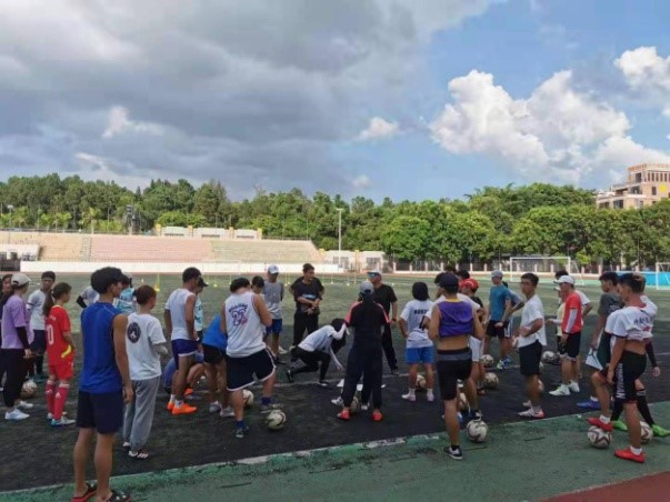 为保证参赛学生在本届比赛中能够正常发挥水平,取得理想成绩,学院领导和体育教育专业教师高度重视,2021年1月组成教师团队开始筹备,并积极讨论参赛人员的选拔以及训练等工作。新学期开始后,学院积极宣传赛事信息,鼓励广大学生踊跃参与,前后有180多人自愿报名参加基本功选拔,并在3月20-21日完成选拔。截至第一次选拔结束,共有108人进入赛前训练阶段,经过10周对包括田径、足球、游泳、教案、说课、队列队形、广播操、体操、武术等项目的教学训练。6月19-20日,进行第二次比赛选拔,共选取54+2(备选)人参加后续集训。在此过程中,学院领导高度重视,频繁前往训练场地对学生和老师的辛苦训练做出慰问和指导。