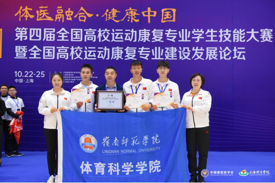 本次大赛以理论笔试+技能操作的模式进行。理论考试涉及《运动解剖学》、《运动生理学》、《康复评定学》、《运动损伤与康复》、《肌肉骨骼康复》等五门课程;技能操作包括急救技术、运动防护技术、肌肉骨骼康复技术、慢性疾病运动处方的制定等科目的竞赛。我校代表队精诚团结、沉着应战、顽强拼搏,最终荣获团体一等奖;个人:覃思伟一等奖1个、陈明亮、黄浩彬二等奖2个,余庆、肖海莉两位老师获优秀指导老师,创历届最好成绩。
