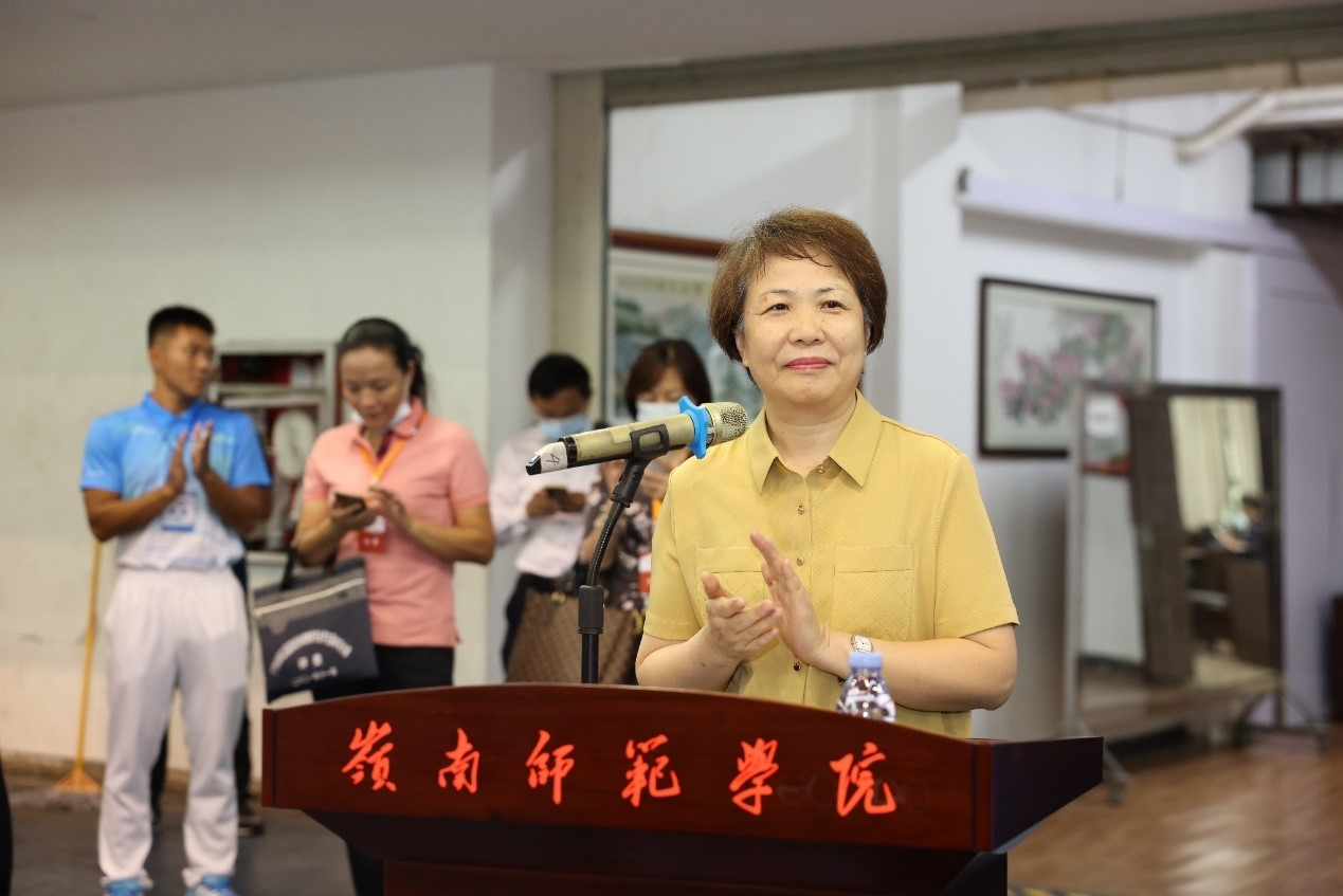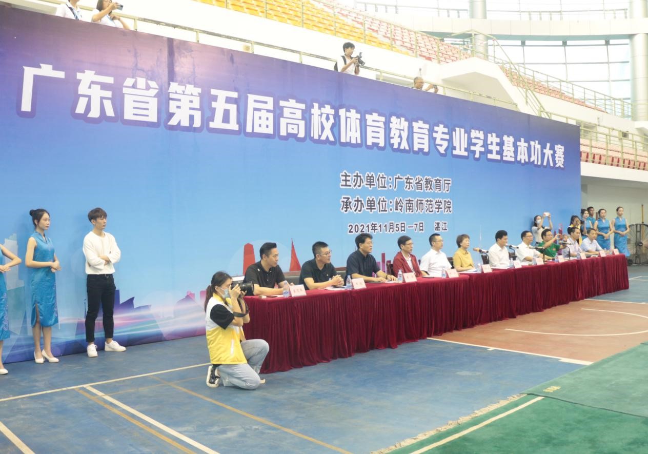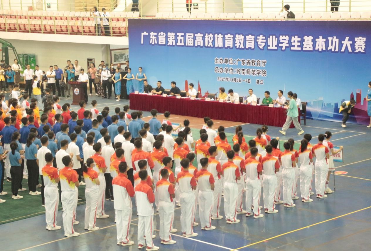 11月6日,由省教育厅主办、岭南师范学院承办的广东省第五届高校体育教育专业学生基本功大赛在岭南师范学院体育馆隆重开幕,来自全省13所高校260余名运动员参加了比赛。岭南师范学院校长兰艳泽、岭南师范学院副校长金义富、广东省教育厅体卫艺处处长陈健生、广东省教育厅体卫艺处三级调研员董业权,广东省教育研究院体育教研员、仲裁肖建忠,广东省教育厅体卫艺处主任科员李华,广东省教育厅体卫艺处车纯,广东省教育厅体卫艺处秦茂华,以及惠州学院副校长郑文,广州体育学院党委委员、体育教育学院院长吴劲松,岭南师范学院体育科学学院党委书记庞景才、岭南师范学院体育科学学院副院长(主持)王海涛、大赛评委组组长、评委以及各参赛单位领队、指导教师、参赛队员出席本次基本功大赛的开幕式。