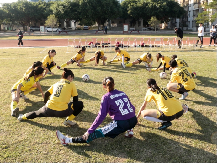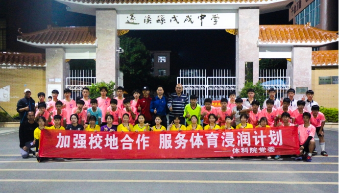 11月10日,体科院党委书记庞景才和孙国宝教练带领岭南师范学院女足队伍前往遂溪戊戌中学与其男足队伍进行比赛。