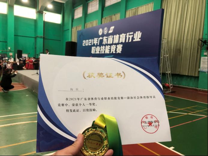体科院教师陶旼在2021年全省体育行业游泳社会体育指导员项目竞赛中获个人一等奖