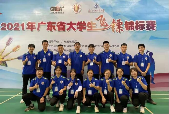 11月26日-28日,由广东省教育厅指导,广东省学生体育艺术联合会和广东省飞镖运动协会主办的2021年广东省大学生飞镖锦标赛在广东外语外贸大学举行。我校飞镖队队员不惧强手,奋勇争先,一举夺得6项冠军、7项亚军、1项季军,同时荣获乙组团体总分第一名、甲组团体总分第二名的优异成绩。