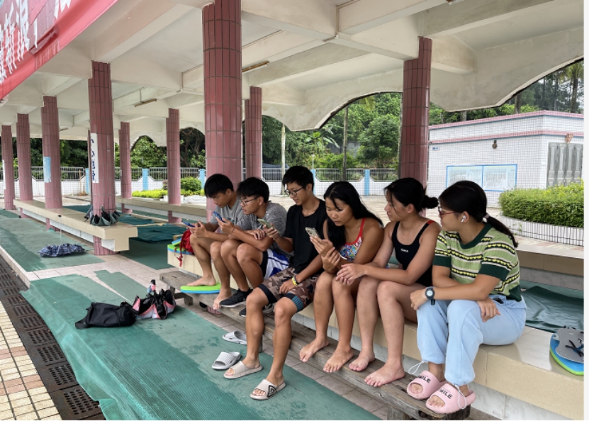 游泳队队员训练场地收看开幕式