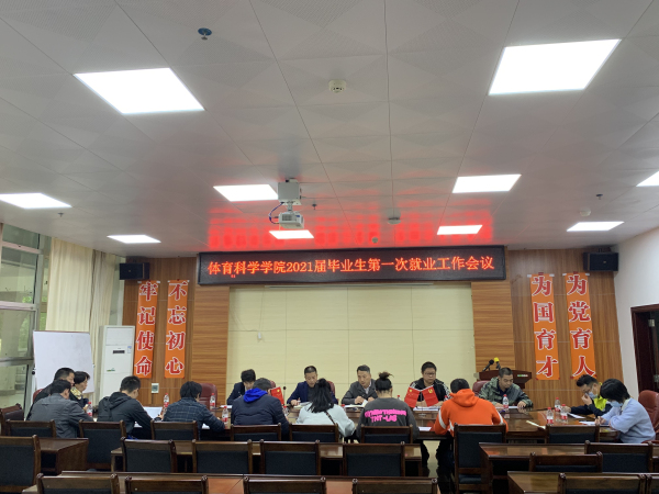 3月2日下午,体育科学学院2021届毕业生第一次就业工作会议在体科院会议室召开。体科院党委书记邱飞,副院长(主持)王海涛,党委副书记屈云,副院长李刚、孙卫红,各系部负责人,辅导员参加会议。会议由王海涛主持。