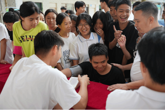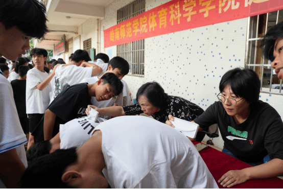 岭南师范学院体育科学学院组织运动康复专业师生开展健康咨询活动,开设互动体验专区,吸引着木苏中学的师生前来参与体验。健康咨询处现场为木苏中学师生测量血压、测定脊柱侧弯度,现场教授海姆立克急救法、心肺复苏术、中医穴位拍拍操、慢性病防治、运动损伤急救等知识与技能,为前来体验的师生提供专业化、精准化、个性化的健康指导与建议。