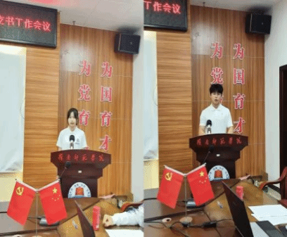 张家源和冼⼩清为新团员代表颁发团章、团员证,佩戴团徽,并带领新发展团员进行⼊团宣誓与团章学习。这⼀系列举措,旨在加深新团员对共⻘团的认知与理解,强化其责任意识与使命感, 让新团员深刻领悟共⻘团精神内涵,从⽽更好地在团旗下成⻓,继而在新时代征程中,以⻘春之我践⾏⼊团初⼼,担当时代使命,书写共⻘团员的⻘春华章。