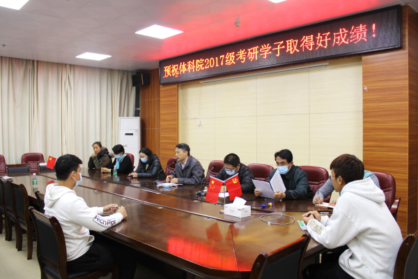 庚子年十一月初七,冬至,适逢2020年考研将至。冬至的“至”,代表极致,因为一年中的这一天,北半球黑夜时间最长。但“天时人事日相催,冬至阳生春又来”,体科院考研学子都相信苦尽总会甘来。12月21日晚,体科院领导班子召集考研学生开展2020年考研动员大会并赠送考试用品和汤圆以表慰问。考研动员大会由体科院党委副书记屈云主持,体科院副院长王海涛(主持)、孙卫红、运动人体科学系主任刘玉倩、社会体育系主任朱晓娜及体育系副主任赵永峰出席本次会议。