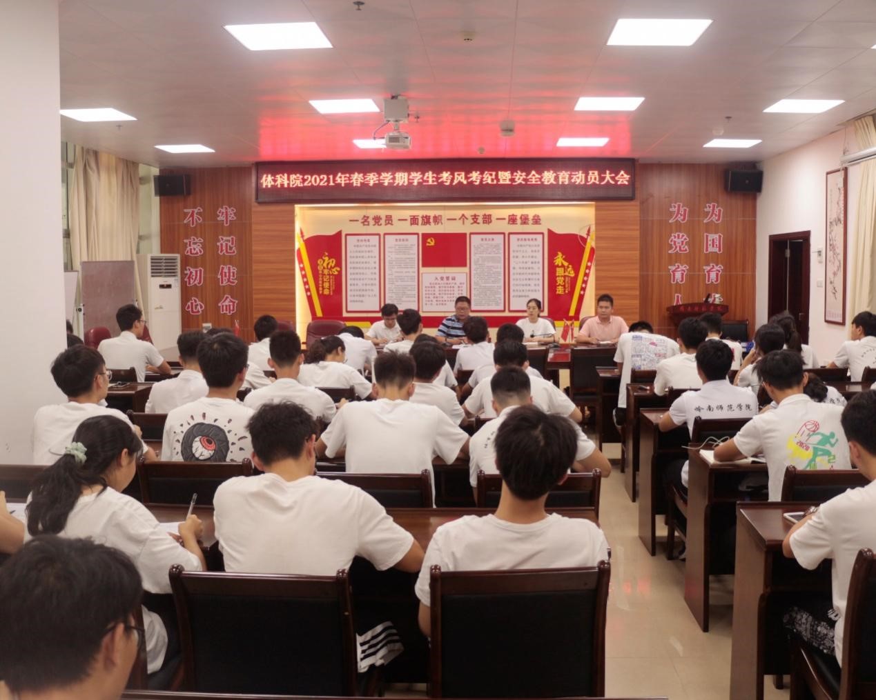 6月15日,体育科学学院2021年春季学期学生考风考纪暨安全教育动员大会于体育馆会议室召开。体科院党委副书记屈云、辅导员陈静、叶萃蓬、乔志老师及体科院八大机构负责人、各班级班长和团支书共参加了本次动员大会。会议由屈云主持。