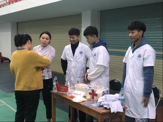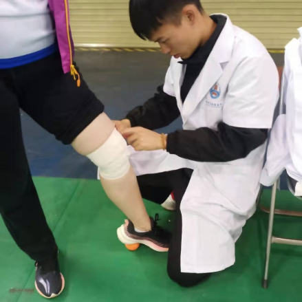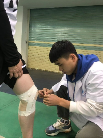比赛期间,参赛队员若出现急性损伤,防护队急性处理点有专业人员根据伤情进行初步的评估和处理。经过服务队的处理,不仅能简单治疗受伤地方,也能缓解训练、比赛后一些的肌肉、关节等问题,使其减少比赛带来的损伤和不必要的疼痛状况。除此之外,运动队在比赛间隙,也开展了运动损伤预防教育宣传科学健身知识。