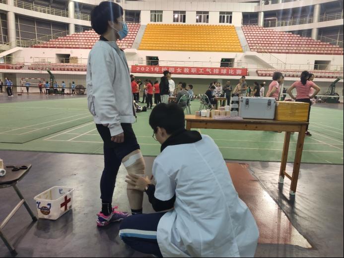 为展示我校女教职工的良好精神风貌,丰富女教工的业余生活,缓解工作压力,激发运动积极性,使女教工身心健康,校工会于12月17日-19日在体育馆举办了2021年女教职工气排球比赛。体科院运动防护队也积极参与其中,为此次比赛保驾护航。