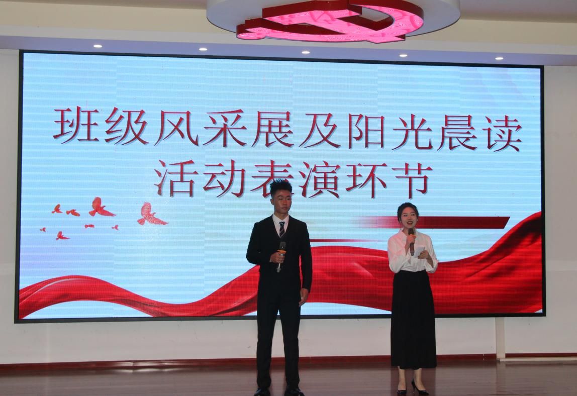 各班通过丰富多彩的形式,结合社会的发展和祖国的建设,联系自身的专业和对未来的发展规划,展示班级同学们的风采和活力。各班以精美的PPT和图片为辅助,深入解读班徽和班旗的内涵,充分展示各班的班级建设、学风精神、专业未来以及班级展望。展示内容丰富,精神内涵深厚,激情饱满,各班班徽设计精巧,寓意深远,充分体现更高、更快、更强的体育精神。红色基因、未来、希望、信仰、责任、奋斗、社会主义核心价值观等词汇贯穿于各班级风采展的始终,班级阳光晨读展现新青年的朝气蓬勃和班级的精神风貌,体现出铿锵有力的精神和钢铁般的意志。