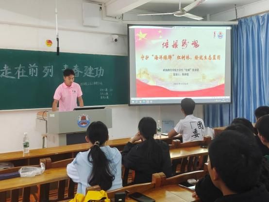 2023 年 12 月 6 日, 2021级体育教育 2 班与 2021级体育教育 5 班在第三教学楼 207 教室联合举行了“走在前列,青春建功 ”主题团日活动,此次活动邀请到学校大学生“培根 ”宣讲团成员陈帅俊进行宣讲,宣讲主题为《守护“海洋绿肺“红树林,绘就生态蓝图》。活动由刘胜文同学主持。