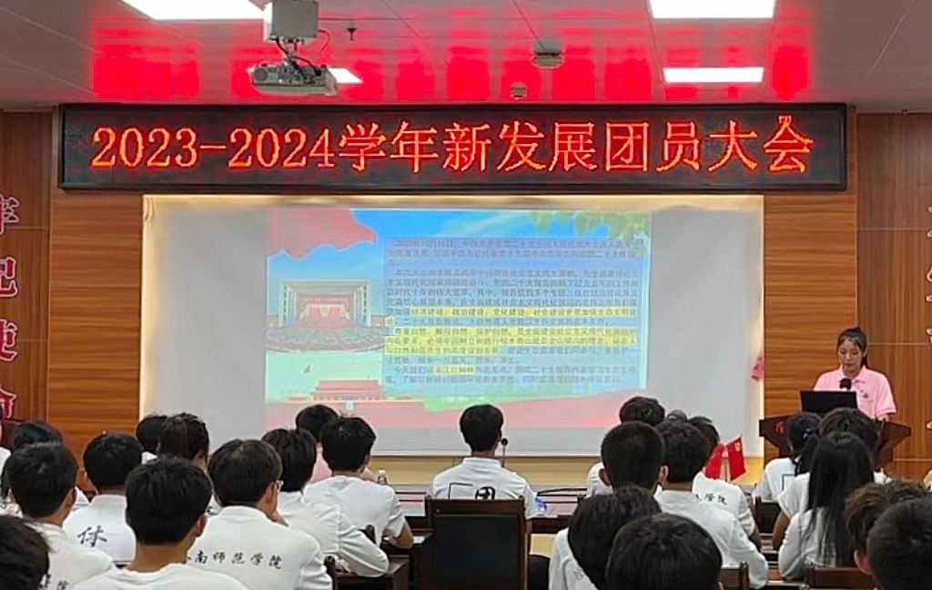 2024年4月14日,体科院团委在体育馆会议室举行了体育科学学院2023—2024学年新发展团员大会。此次活动邀请学校大学生“培根”宣讲团成员冼小清宣讲《保护红树林,弘扬红树林的精神》。学院团委指导老师张富锋,学院团委学生干部以及全体新发展团员共同聆听了宣讲。活动由体科院团委组织部干部阮倩同学主持。