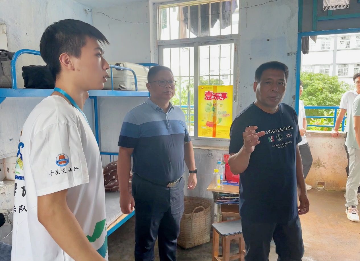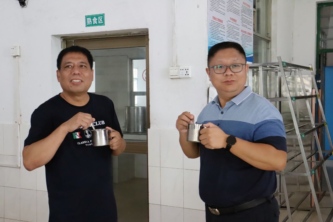 屈云一行首先前往教室视察了学生们的上课情况。屈云详细了解了实践队开展活动的情况。实践队队长温家城表示,实践队开设的主要是一些与体育专业相关的特色课程,实践队也会对当地居民,特别是青少年和老年人的体质健康情况进行调研。屈云一行在李晓东等陪同下,参观了学校饭堂和宿舍。屈云提醒实践队成员在日常饮食中要注意食品安全。老师们还品尝了后勤组成员制作的糖水。