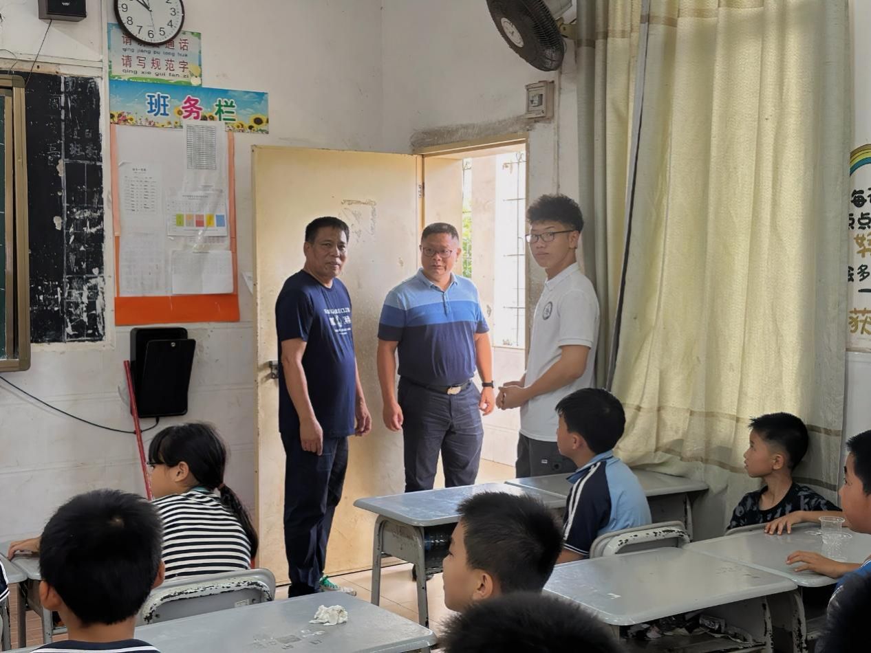 7月11日,岭南师范学院体育科学学院党委副书记屈云,辅导员张富锋、张家源、刘炜玉来到遂溪县前进学校视察“寻星”社会实践队的三下乡实践活动推进情况。遂溪县前进学校校长李晓东、团委副书记李泽城、政教主任吴哲婷、“寻星”社会实践队全体队员,带领体科院老师一行察看了社会实践开展情况。