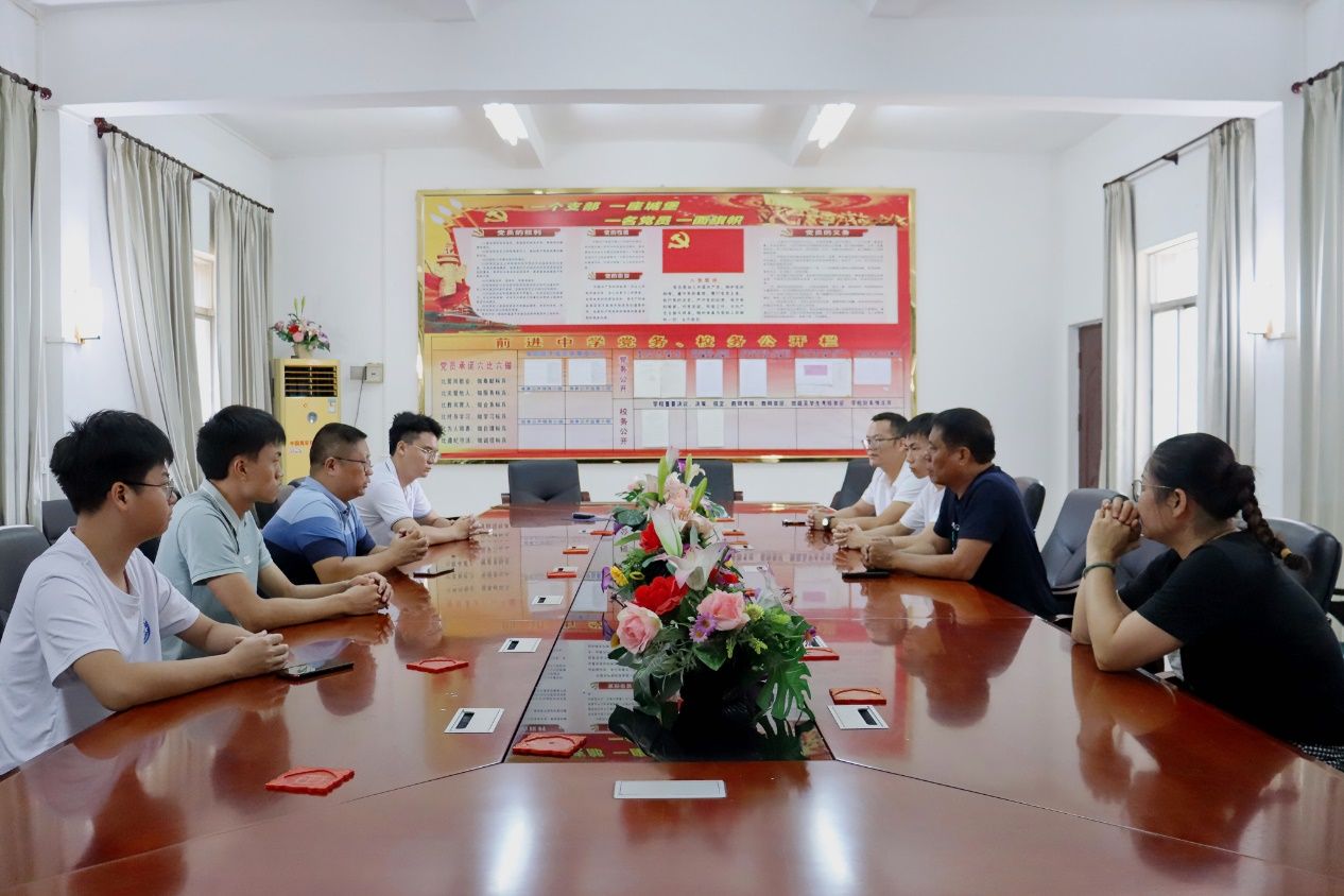 在前进学校会议室,屈云一行与前进学校进行了简单的交流。