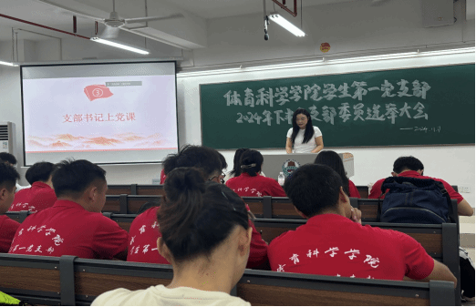 为深入学习贯彻党的教育方针,加强对学生党员的培养与教育,确保党员队伍的质量与生机活力,11月17日,体育科学学院学生第一党支部开展了2024年下半年支部书记上党课暨支部委员换届选举大会。党支部书记司茹、辅导员李琳婷、学生第一党支部全体党员、发展对象、积极分子参加此次大会。大会由李旭东同志主持。