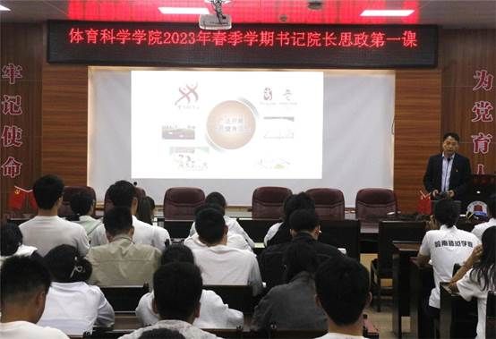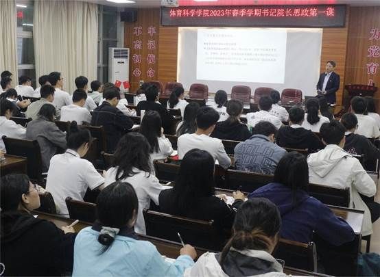 为提高新时代青年大学生的政治修养和思想觉悟,3月15日晚,体科院在体育馆会议室召开2023年春季学期书记院长第一堂思政课。体科院党委书记庞景才、院长王海涛主讲,体科院全体学生党员、积极分子,学院学生八大机构主要干部、各班主要学生干部聆听了此次思政课。
