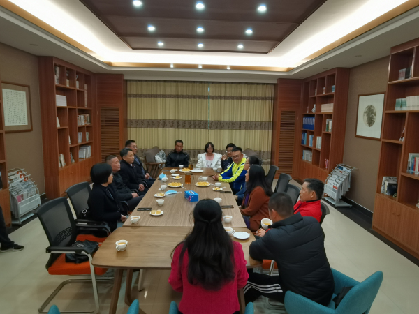 1月20日,体科院党委邱飞书记、王海涛副院长(主持)、梁立启副院长、办公室梁子静副主任、辅导员陈静老师一行走访看望了体科院阳春地区校友,受到龙伟、袁红莲等6位校友的热烈欢迎。