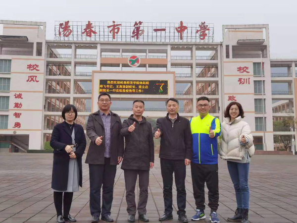体科院一行首先来到02届体育教育专业校友龙伟的阳春市龙歌体育产业有限公司的体育场馆进行走访调研,了解校友企业的发展情况及人才需求,并就双方的日后合作方向和工作计划进行了深入的探讨。随后,邱飞一行前往阳春一中看望了袁红莲等5位校友,并进行了座谈,校友们回顾了在母校期间的学习和生活情况,并介绍了各自目前的发展状况以及阳春一中近年来开展的工作和取得的成绩,并对学院人才培养、社会服务进行了深入的探讨和交流,提出了宝贵的建议。他们纷纷表示将会一如既往的关心和关注学校和学院的发展,为助推学校和学院的高质量发展贡献力量。