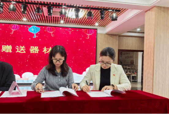 在热烈的掌声中,王钦校长签署了器材捐赠认领书。