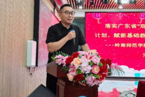 接着,遂溪县教育局周炳辉局长强调了教育的重要性,并热烈祝贺我校女子篮球队夺得湛江市的女子篮球赛冠军,这份殊荣来之不易。然后,周局长表示,此次活动搭建了高校与遂城第四小学沟通的桥梁,实现了知识与资源的共享,心灵与情感的交流,为孩子们的成长带来了新的希望。这不仅是物质帮助,更是精神鼓励,将激励师生们更加努力工作、学习,以优异成绩回报社会。他希望双方继续深化合作,不断创新合作模式,确保帮扶活动取得理想的成效,实现共赢。