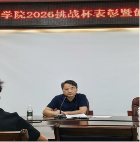 孙卫红为2026年“挑战杯”院赛获奖队伍颁奖,对获奖团队表示肯定与勉励。她希望全体学生骨干,充分发挥带头作用,将双创精神传递至班级全体同学,带动更多学子主动关注科创、投身双创实践,营造全员参与的良好氛围。
