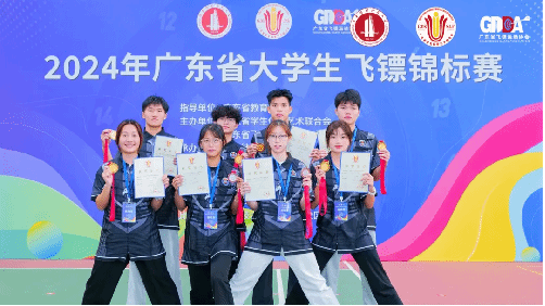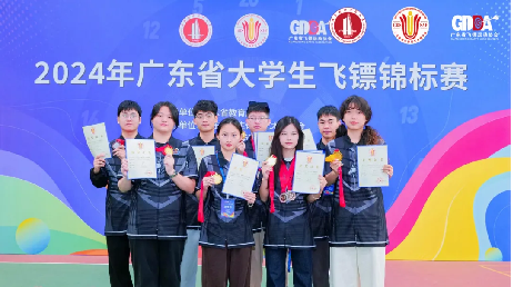 我校飞镖队队员不惧强手,奋勇争先,一举夺得7项冠军、5项亚军、1项季军,荣获广东省大学生飞镖锦标赛乙组团体总分第一名,甲组团体总分第二名。
