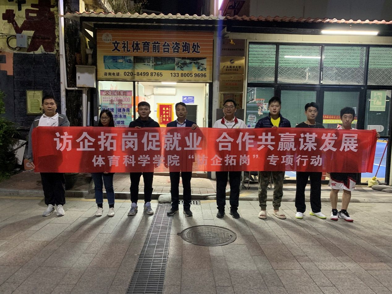 为认真落实教育部深入开展访企拓岗促就业专项行动要求,全力推动我院2024届毕业生高质量充分就业,12月4日,岭南师范学院体育科学学院院长王海涛、副院长梁立启、教学秘书黄巧及辅导员乔志前往广州市文礼体育发展有限公司进行企业拓岗考察。