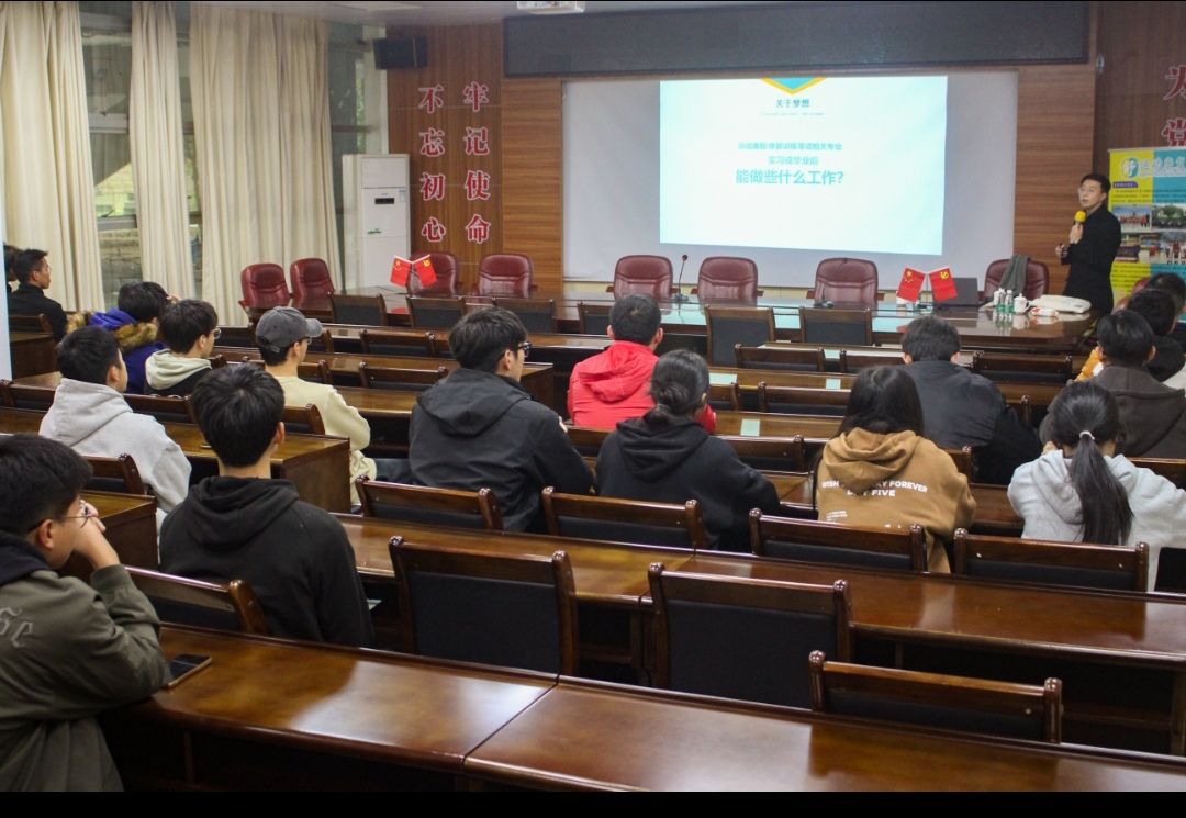 12月17日,湛江市舒心健康管理有限公司应体育科学学院邀请,在尚体馆会议室召开运动康复专业招聘宣讲会。运动康复专业的同学参加本次宣讲会。湛江市舒心健康管理有限公司负责人陈鹏宇负责宣讲。