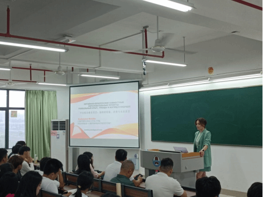 娜塔莉亚从学校简介、项目介绍、学科优势、生活情况等方面系统阐释预科项目特色,阐述了“岭南师院-白体大”联合培养优势。她表示,在中白全面战略伙伴关系积极发展的背景下,教育合作已成为重点发展的领域之一,而白俄罗斯国立体育大学孔子学院作为白俄罗斯国立体育大学和岭南师范学院两校的现代化教育机构和中白教育项目,主要任务是开展教育活动,发展汉语、文化和武术教学,加强两所大学在体育、体育文化和旅游领域的科研国际合作与发展、搭建多元文化对话平台。她认为,同学们在该项目中可获得语言赋能、专业衔接、升学保障等优势。她邀请同学们积极参与到该合作项目中来并从中获益。