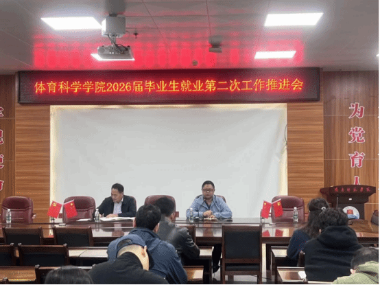 为切实做好毕业生就业工作,落实学校2026届毕业生就业工作推进会精神,体育科学学院于2026年3月11日下午召开就业工作推进会,直面当前就业工作中的痛点难点,明确就业指标、凝聚工作合力,多措并举推动毕业生就业工作提质增效。体育科学学院党委书记庞景才,党委副书记屈云及教师代表出席此次会议,会议由屈云主持。