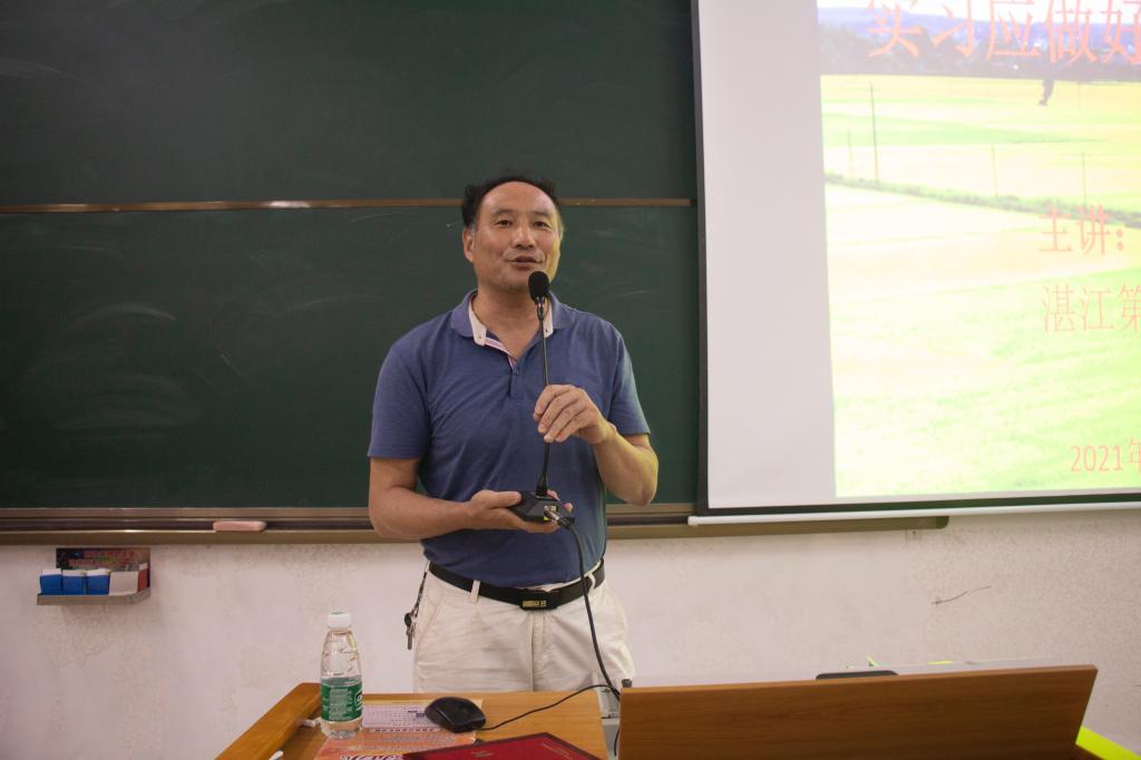 陈志强着重强调实习的目的,首先要在学生与教师角度的转化中随机应变,尽快适应教师这个行业该有的职责;其次实习的过程是检验在学校的学习效果的一个很好的实践机会,实习生应找出自身不足还可以在回校时取长补短;最后这个实习机会能够验证自己是否适合教师这个职业,尽早实行职业规划。