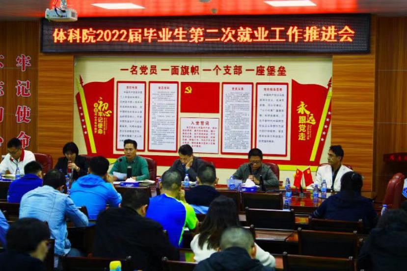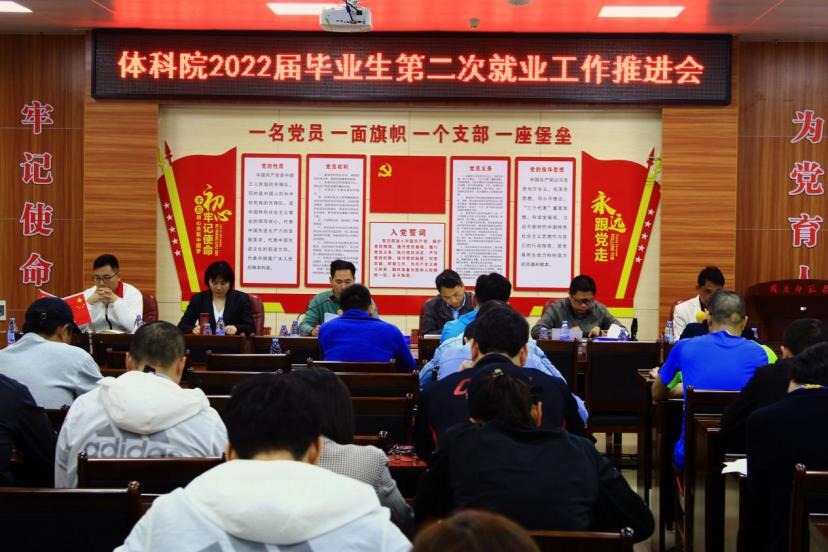 3月23日下午,学院2022届毕业生第二次就业指导工作推进会在体育馆会议室召开。体科院党委书记庞景才,体科院副院长(主持)王海涛,党委副书记屈云,副院长梁立启、孙卫红、赵永峰及体科院全体教师出席会议。本次会议由屈云主持。