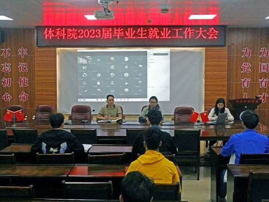 3月9日上午,体科院于体育馆会议室举行2023届毕业生就业工作大会。体科院党委书记庞景才,党委副书记屈云,毕业班辅导员陈小倩,体育科学学院2023届全体毕业生参加此次会议。本次会议采取线上线下结合的模式开展,屈云主持本次会议。
