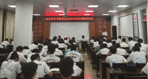 2025年3月12日,体科院学生会在尚体馆会议室召开2024年度述职评议大会。党委副书记屈云,学生会指导老师张家源,校学生会主席团嘉宾吕泳森,各年级年级长,六大机构代表,各班团支书、班长、副班长,以及学生会全体成员共同参加会议。