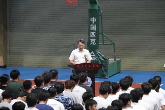 王海涛表示,学院自创立以来始终秉持“以人为本,德育先行,开拓创新,追求卓越”的办学理念,致力于培养德智体美劳全面发展的高素质体育人才。王海涛对同学们提出三点要求:一是树立远大理想,做好职业规划。要树立助力体育强国、健康中国的远大理想,结合自身实际做好职业规划,脚踏实地增长才干;二是苦练专业技能,提升职业能力。要传承体育人精神,深耕专业知识、苦练专业技能,努力成长为高水平体育人才;三是立志服务社会,主动参与实践。要主动参与学院实践活动,提升服务体育事业的能力,践行社会责任。