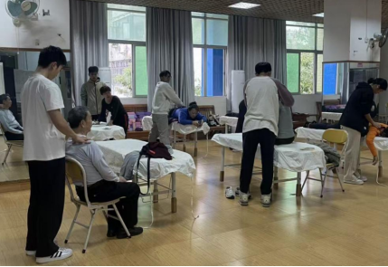 “燕岭霞光”志愿者活动已在老年活动中心持续开展多年。体育科学学院的学生充分发挥专业优势,常年为退休教师提供专业的按摩服务,以热情和笑容丰富老同志们的生活!