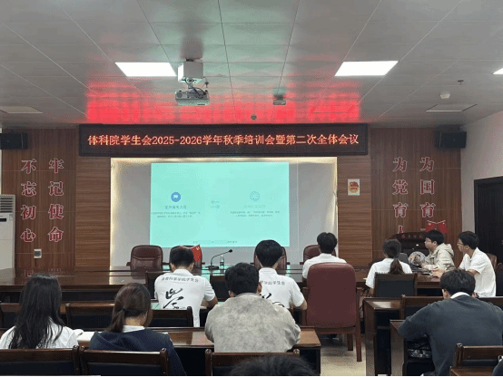 为深入学习贯彻全国学联第二十八次代表大会精神,12月10日,体育科学学院学生会在尚体馆会议室召开2025-2026学年秋季培训会暨第二次全体会议。